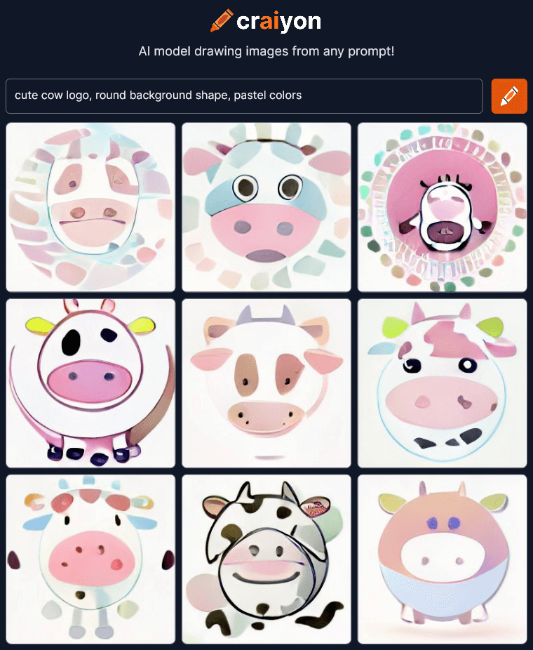 Here’s a list of what I tried until now, all with an example prompt of cute cow logo, round background shape, pastel colors. My current logo is a paid stock image and I won’t replace it as I like it a lot, but as you can see most AI results here are actually pretty good, something one could professionally use.